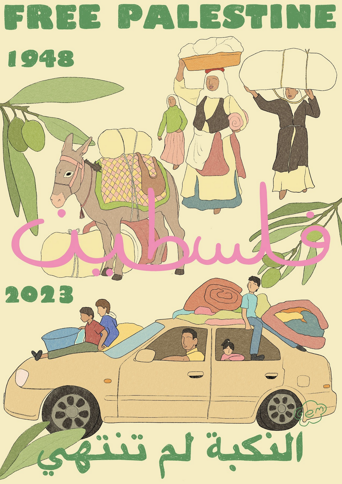 A3 Print with Free Palestine in English. By the artist Gauri Elisa :